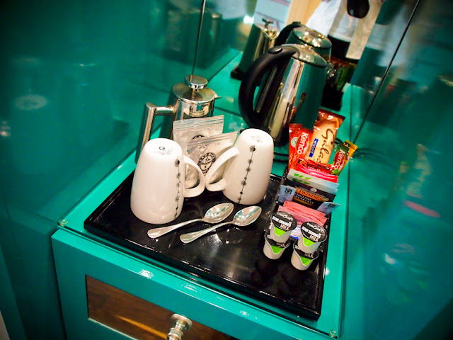 We are staying at the Hotel Indigo on Waterloo in Glasgow, Scotland. This hotel smells fantastic and everything is clean and fresh with vibrant up to date styling. In fact EVERY time we walked in, mom would say "this place smells so good"! I loved all of the bright colors. The coffee/tea service has a hot water pot and a french press pot with real coffee to press or instant coffee, teas, and cocoa. There is also a little package of Shortbread which was delicious! After eating one, I hid the other ones so they would bring more....and they did! Breakfast was included in our rate and was either a nice continental or you could add off the cooked breakfast menu. The raspberry (or cherry) danish were to die for! The hotel is located within walking distance of lots of places to eat and coffee shops as well as being close to the city center. I would definitely come back to this hotel if I ever find myself back in Glasgow. Tripadvisor.com comes through yet again!!