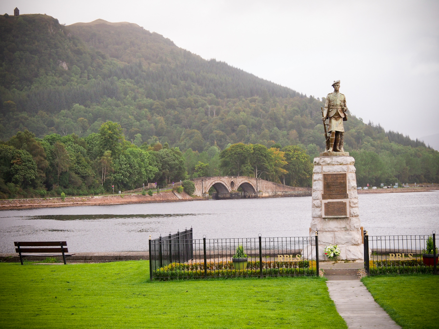 top, and be thankful for having reached the highest point. The valley was absolutely stunning and we were thankful that we brought our coats along as it was very chilly in the higher elevation of the Highlands. From there, we drove to the town of Inverary for a longer stop to look around the town. We were supposed to get a quick look at Inverary castle, but there was some kind of food festival going on, and our tour van wouldn't be allowed near it. We had to get a quick look as we drove into the town. The Duke of Argyll built the Inverary castle and decided that he didn't like his neighbors so he built a new town of Inverary and moved all the people away from his castle. No kidding! The castle is now used as an exclusive golf resort. From there we went to Kilchurn Castle which is a ruined castle from the 15th century and also has an addition from the 17th century on one end. The original building of Kilchurn Castle was built in about 1450 by Sir Colin Campbell, first Lord of Glenorchy, as a five story tower house with a courtyard defended by an outer wall.We had to walk about a mile out to the castle and were ready to stretch our legs. This castle was originally surrounded by water, but water levels in the Loch Awe surrounding it have fluctuated, making it easier to access by foot. It was the ancestral home of the Campbells who decided in the mid 1700's that they didn't want it and tried to sell it to the Brits (government), who also didn't want it, so they left it to fall into ruin. Local townspeople stole stone from it to build homes in the area so it is now under the care of Scotland's version of the historic society to preserve what it left. Our next stop was Oban where we stayed for about an hour and lunched on our own. We opted for a traditional British meal of fish and chips as Oban is a fishing village and the fish served comes right from the water across the way. Fish and chips is crispy battered and fried Haddock or Cod (we chose Cod) and french fries. It was delicious. Since we didn't get to see Inverary Castle, our guide took us to St. Conan's Kirk, a very old church in the area built by an amateur architect named Walter Campbell for his elderly mother because the nearest church was too far away for her to attend. The original church was begun in 1881 and completed in 1886 and was a very simple structure. This wasn't enough apparently for Walter, and he then devoted the rest of his life to making a bigger church. He began that work in 1907 and died in 1914. His sister picked up the project after WWI but she died in 1927. The work was completed by their trustees in 1930. We then drove to the Castle Stalker Viewpoint area which was of a castle named Castle Stalker built around 1320. This castle is completely surrounded by water and is privately owned and fully restored. From there we drove to Glen Coe which is a glen named after the River Coe that runs through it. It is surrounded by mountains and was astoundingly beautiful. I was really surprised that everything was still so green and there were waterfalls everywhere! We stopped a couple of times as we drove through to get a few pictures. It began to get misty and even rain a little, but we still kept going. Unfortunately for me, my camera battery died halfway through this tour because it was so cold and I didn't bring an extra. I had to use my iphone and Dad's camera to make sure I captured what we were seeing. I always tell people I travel with to please bring their own camera and not to rely on only my pictures and this is exactly why. From here, we went on to our last stop which was brief and that was a photo stop of Loch Lomond at Luss. We thoroughly enjoyed this tour and I am so thankful that we had the opportunity to get out of the city and into the country. We got a good dose of the typical Scottish balmy weather and learned a lot of history. I would definitely tour with this company again if I ever return to Scotland. We stopped at Wetherspoon for supper on the way back to our hotel. This is a British chain that's a bar and food atmosphere. Nothing fancy, but good, hot food. Tomorrow we will take a train adventure to Edinburgh. Until then....